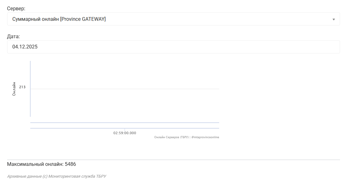 Данные ТБРУ о пиковом онлайне серверов за 03 декабря 2025 и времени, когда он был достигнут